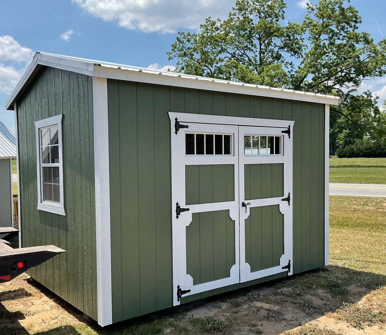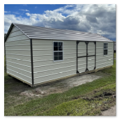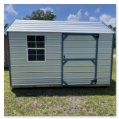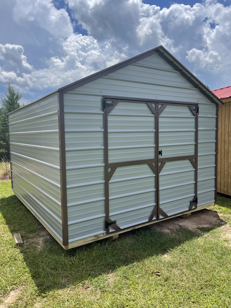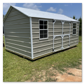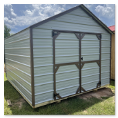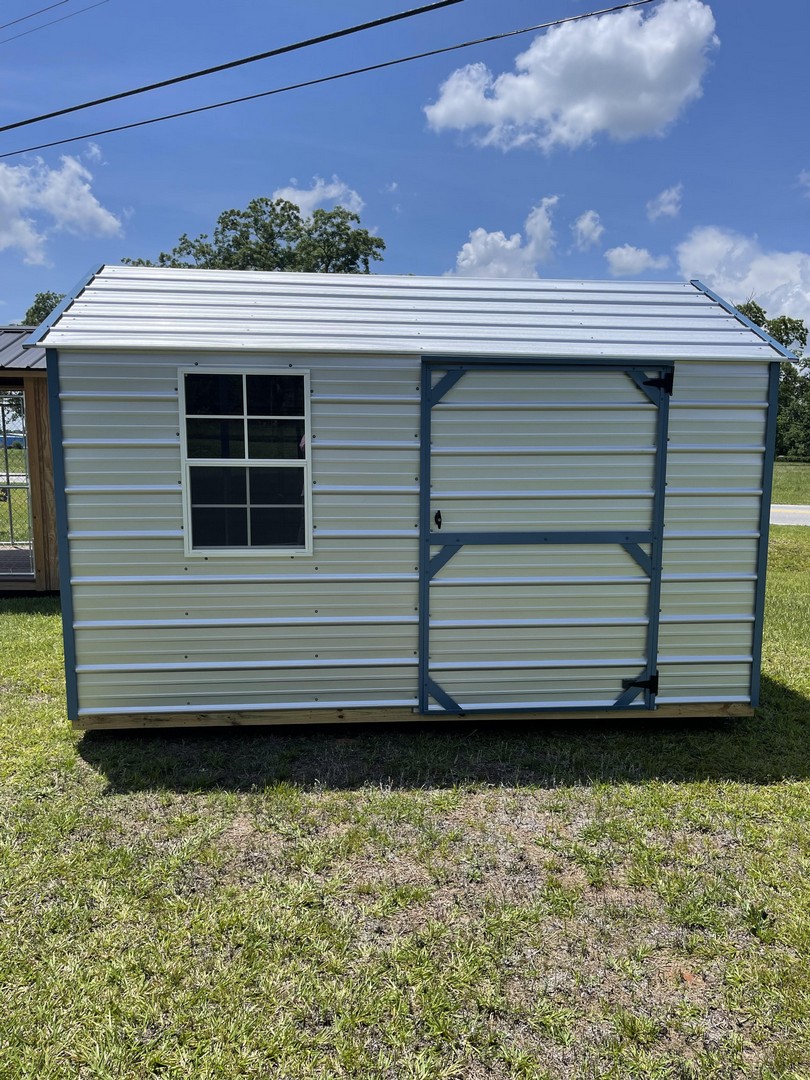 The metal utility building comes with a 10 year warranty. Available in sizes from 8 ×12 through 12x32 These portable utility buildings make great workshops,storage buildings, tool sheds and more! We can add windows, lofts, ramps or other features to make this building meet your needs! Built locally in Montezuma, GA. Our goal is to offer you a quality product at a reasonable price. Metal Utility buildings come with a side, roof and trim color of your choice.