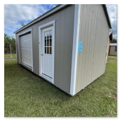 The traditional classic building comes with a 10 year warranty. Available in sizes from 8 ×12 through 16×40. These portable utility buildings make great workshops, pool houses, storage buildings, and more! We can add windows, lofts, porches,ramps or other features to make this building meet your needs! Built locally in Montezuma, GA. Our goal is to offer you a quality product at a reasonable price. Utility buildings are available painted, or natural wood finished. Metal roof or shingle roof.