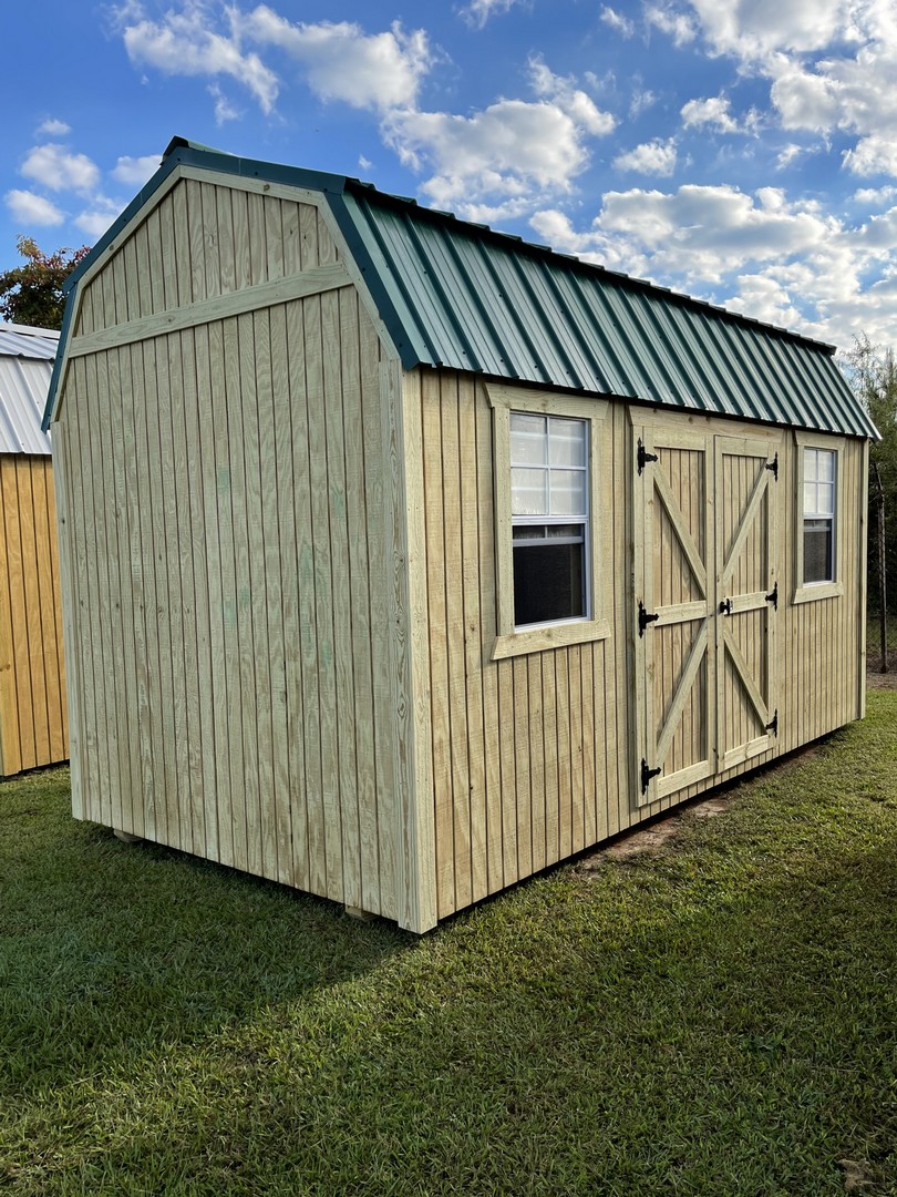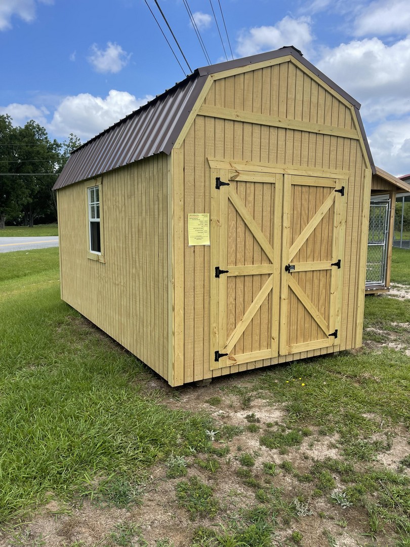 The Lofted barn comes with a 10 year warranty.These buildings come standard with two 4’ lofts. Available in sizes from 8 ×12 through 16×40. These Lofted barns make great workshops, pool houses and storage barns, and more! We can add windows, porches, ramps or other features to make this barn to meet your needs! Built locally in Montezuma, Ga. . Our goal is to offer you a quality product at a reasonable price. Lofted Barns are available painted, or natural wood finished.