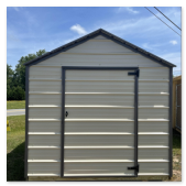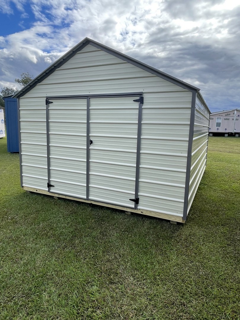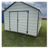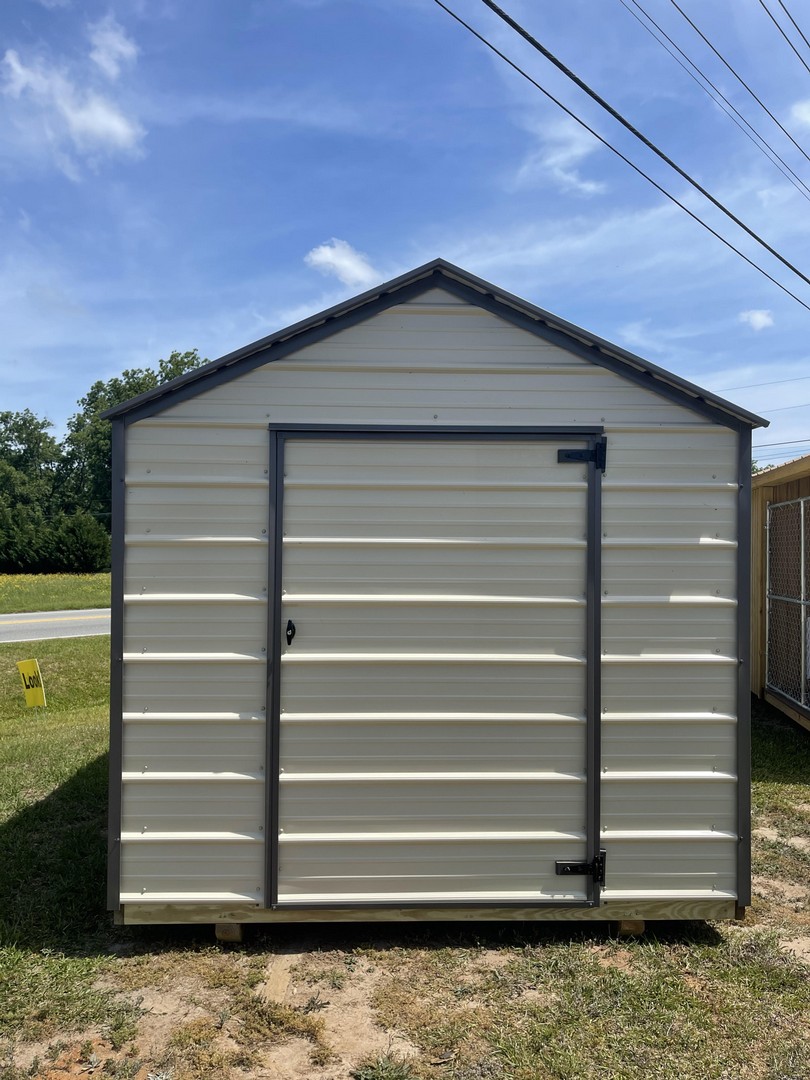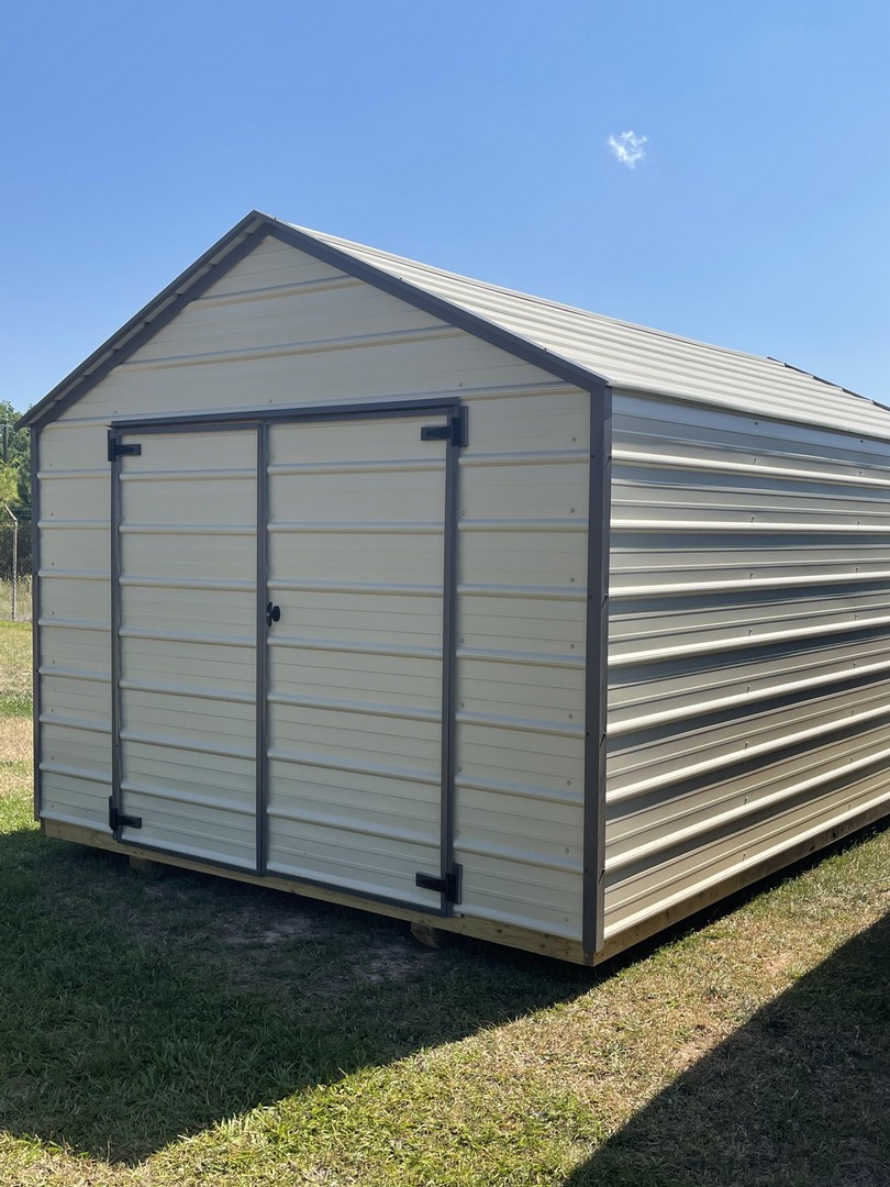 The economy metal utility comes with a 5 year warranty. Available sizes 8x12 through 12x32. This is our most economical building option. These buildings are great for storage, tool sheds, and lawn equipment. Built locally in Montezuma, Ga. Our goal is to offer you a quality product at a reasonable price. Economy Metal Buildings come in Sandstone on the roof and Sides. With your pick of a trim color. Options are not available for this model.